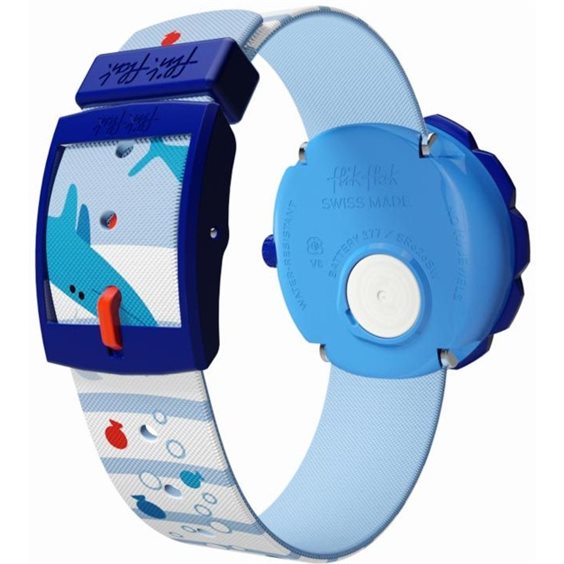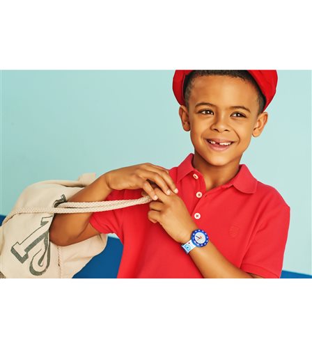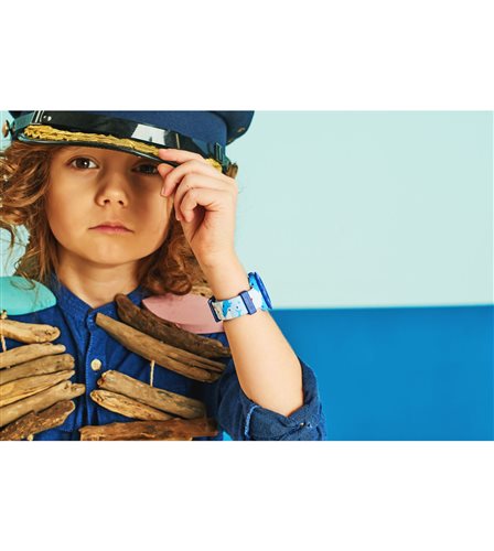 Scopri le misteriose creature delle profondità dell'oceano con ANCHOR UP! Questo orologio Swiss-made ha una lunetta rotante in plastica opaca blu scuro stampata in bianco e un cinturino lavabile in lavatrice a 40°C. Il perfetto compagno di avventure per ogni giovane esploratore.