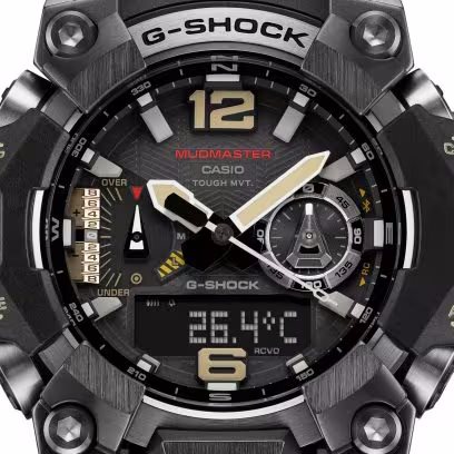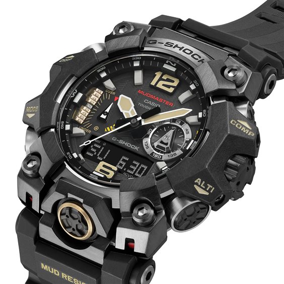 Vivi avventure estreme con GWG-B1000 della serie G-SHOCK Mudmaster. Progettato per resistere anche nelle situazioni più difficili, questo Master of G è particolarmente resistente agli urti, alla polvere e al fango grazie al sistema di guarnizioni e alla struttura di protezione completamente ridisegnata che integra componenti realizzati con materiali diversi: per l’esterno in metallo vengono utilizzate tecniche di forgiatura ad alta precisione, mentre la cassa si presenta in resina rinforzata con fibra di carbonio. L’orologio è dotato di un triplo sensore che fornisce dati su altitudine, pressione barometrica e temperatura per seguirti ovunque. E con l'indicatore di posizione seguirai sempre la direzione corretta, anche quando la visibilità è limitata. Completano le funzioni di questo modello la ricarica solare e il sistema di radiocontrollo e di connettività allo smartphone per una maggiore precisione e affidabilità. Le luci a doppio LED e il vetro zaffiro garantiscono poi un'elevata leggibilità, in modo da poter vedere sempre l'ora e gli altri dati in tutte le condizioni di luce. Per una maggiore attenzione verso l’ambiente, cassa, lunetta e cinturino sono realizzati in resine a base biologica.