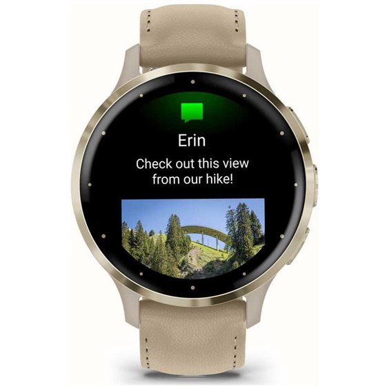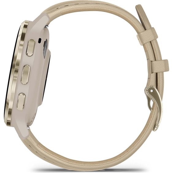 Venu® 3S French Gray & Soft Gold con cinturino in pelle Concepito per offrire funzioni avanzate durante i tuoi allenamenti, effettuare chiamate e inviare messaggi1, Venu 3S non è solo uno smartwatch, ma un allenatore personale che può aiutarti a raggiungere qualunque obiettivo.