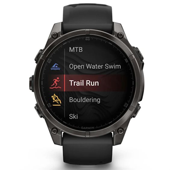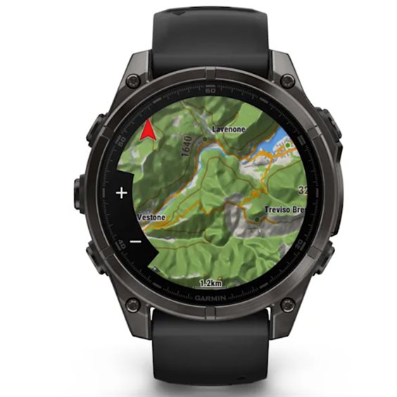 fēnix® 8 - 47 mm, AMOLED Sapphire, Titanio, Carbon Gray DLC con cinturino in silicone Black/pebble grey CODICE PRODOTTO010-02904-21 BE LIMITLESS Progettato per fare la differenza, assiste atleti e amanti dell'avventura nel superare i loro stessi limiti, funzioni evolute per allenamenti di forza e immersioni, speaker interno e microfono per i comandi vocali, torcia a LED integrata e molto altro ancora.