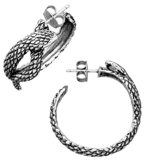 Collezione Serpente. Texture di argento brunito e scaglie lucenti di serpente per questi iconici orecchini disegnati da Giovanni Raspini. Qui il tema stilistico con serpente arrotolato viene interpretato in termini figurativi, realizzando un gioiello avvolgente ed elegante.