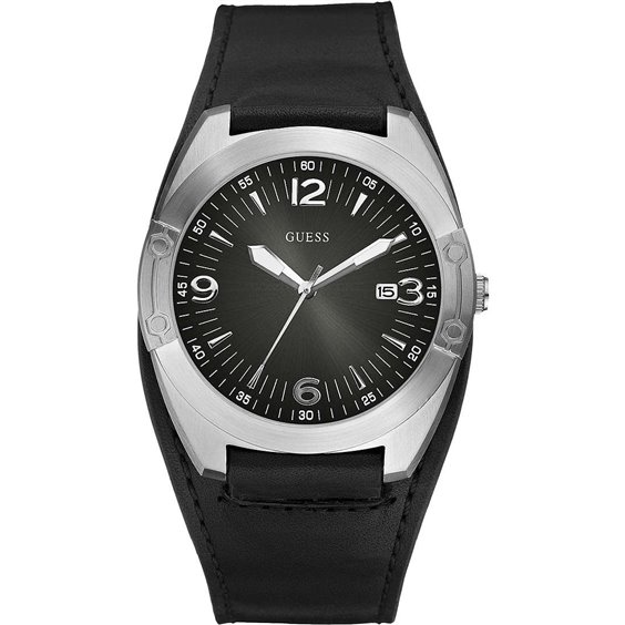 Prodotto: orologio solo tempo uomo Guess W75052G1 OROLOGIO GUESS CASSA IN ACCIAIO SATINATO QUADRANTE NERO DATARIO CINTURINO STILE CUFF IN PELLE NERO REF W75052G1 ,DIAMETRO CASSA 43MM.