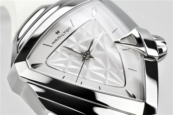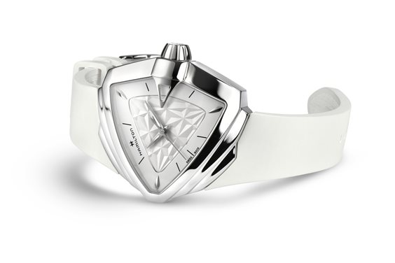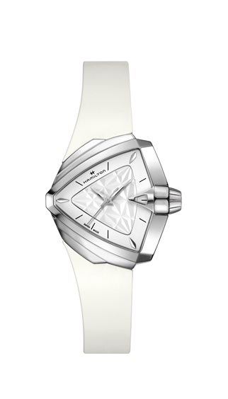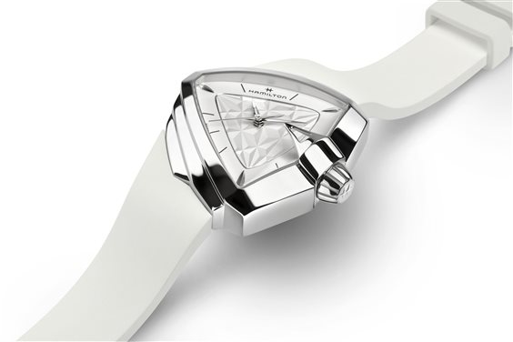 Più di cinquant’anni dopo, il primo orologio elettrico al mondo conserva un’estetica futuristica con la sua iconica cassa triangolare. Il Ventura S Quartz presenta un design ad effetto 3D su un quadrante nero o bianco completato da un cinturino in caucciù coordinato.