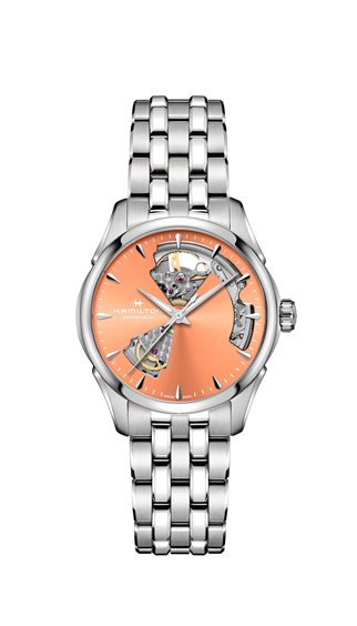 Il Jazzmaster Open Heart 36 mm, con il suo quadrante traforato albicocca effetto soleil, punta tutto sulla precisione e rivela al contempo la raffinata bellezza del movimento meccanico al suo interno. Mettendo in risalto il movimento automatico H-10, con una riserva di carica di 80 ore e spirale in Nivachron™, il Jazzmaster Open Heart vanta un sofisticato bracciale in acciaio, che incarna il savoir-faire in continua evoluzione di Hamilton e l'attenzione ai dettagli.