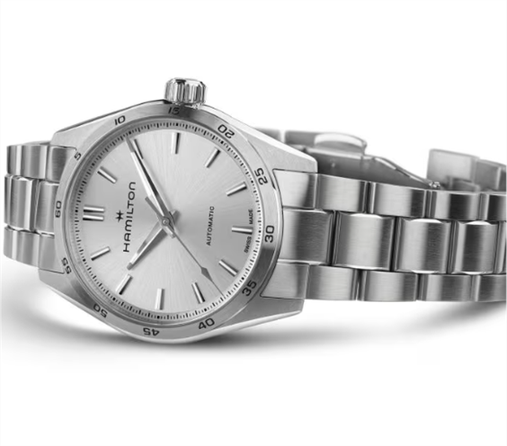 Pensata per chi ama in egual misura funzionalità e stile, la linea Jazzmaster Performer offre una potente estetica sporty-chic. Animato dal movimento automatico H-10 con riserva di carica fino a 80 ore, questo Jazzmaster Performer Automatic presenta una cassa in acciaio da 34 mm messa in risalto da un moderno quadrante argento, indici in nichel e un raffinato bracciale in acciaio.