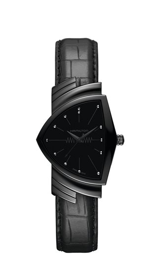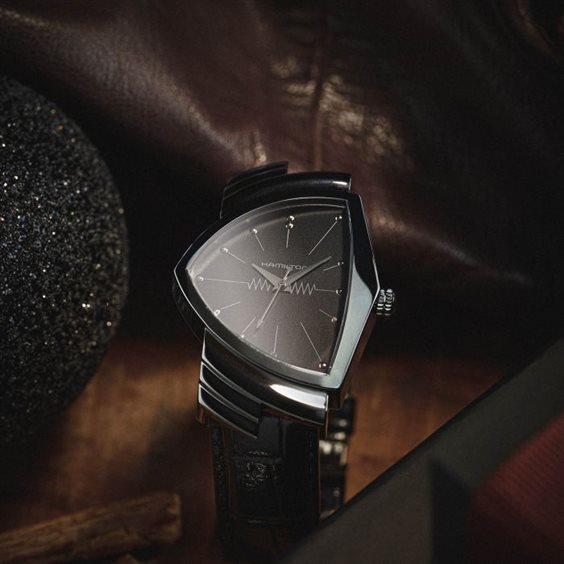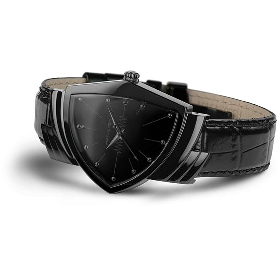 Diametro 32.3 x 50.3 mm Il Ventura originale, presentato nel 1957, passò alla storia dell'orologeria come il primo orologio elettrico a batteria al mondo. Con il suo design unico e audace, divenne rapidamente un'icona e un oggetto da collezione. L'ultima interpretazione del Ventura è un fedele tributo all'originale e richiama la pionieristica forma a scudo della cassa, esempio di design moderno "Mid-Century".