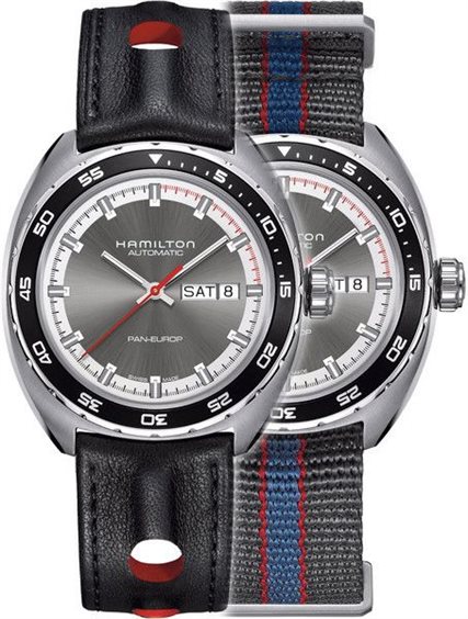 Il nome Pan Europ non deve trarre in inganno: questo orologio, infatti, incarna il puro spirito americano Hamilton ed è pronto per portarti con sé in un viaggio on the road. Il modello ti garantirà sempre la massima precisione ed eleganza, accompagnate dal battito incessante del movimento automatico. Nei momenti di pausa, la riserva di carica fornisce un supporto immediato e la visualizzazione del giorno e della data permette di non perdere la cognizione del tempo. Un orologio sobrio, classico e versatile, disponibile con cinturino in pelle o NATO.