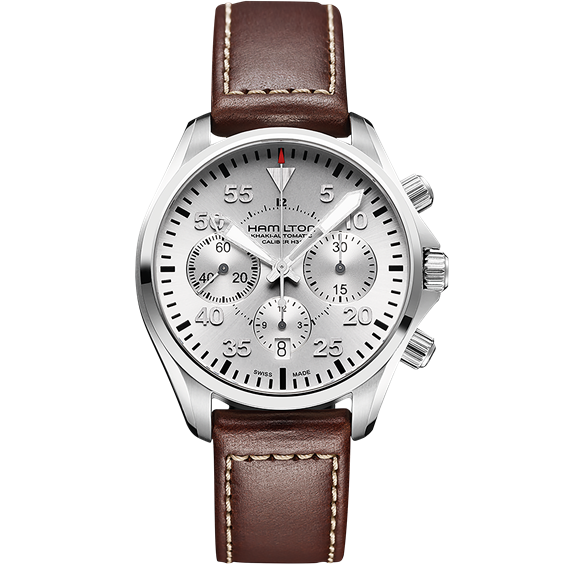 Con il suo design classico, ispirato agli strumenti di volo, la gamma Khaki Pilot rievoca gli albori dell'aviazione, quando i piloti erano pionieri temerari. Era l'epoca d'oro dell'aviazione: i piloti, esposti agli agenti atmosferici nelle cabine aperte, raggiungevano sempre nuove altezze. I designer di Hamilton hanno mantenuto vivo questo spirito, aggiungendo al modello un cronografo automatico sportivo dal tocco moderno.