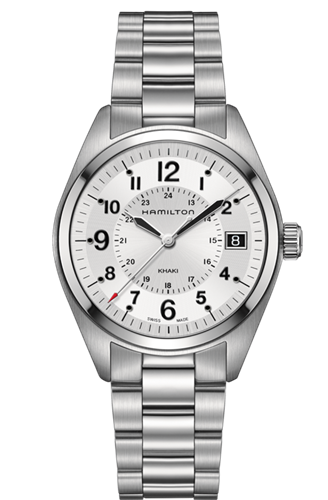 Questo orologio Hamilton ha una cassa in acciaio inox con un diametro di 40 mm ed è dotato di un cinturino in Metallo. All'interno ha un movimento quarzo svizzero per orologi di qualità ed è finito con un vetro di tipo Zaffiro. L'orologio è impermeabile a 5ATM. Questo significa che l'orologio è adatto per uso sotto doccia. L'orologio è fornito con 2 anni di garanzia in tutto il mondo.