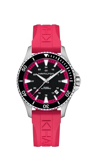 Sulla spiaggia, a bordo piscina o nelle profondità marine, lo stile del nuovo Khaki Navy Scuba fa sempre colpo. Pensato per i marinai moderni, i surfisti, gli amanti dello snorkeling o della spiaggia, è accattivante e funzionale grazie al cinturino in caucciù rosa acceso e al quadrante nero a contrasto. Il tuo compagno ideale per cronometrare una nuotata, una corsa o per un momento di relax al sole.