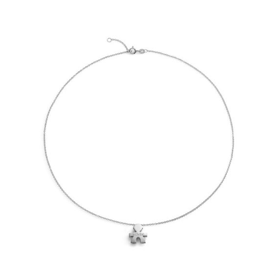 Ciondolo con catena sagoma bimbo in oro bianco18kt. Altezza: 1,4 cm Lunghezza regolabile 40,42 cm