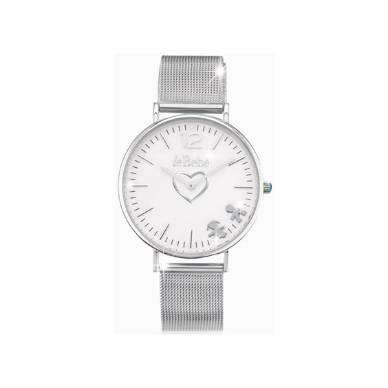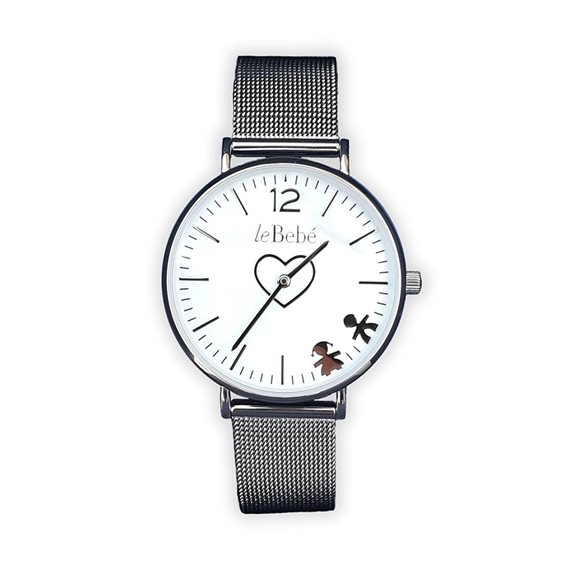 Orologio con cassa mm.26 bracciale acciaio maglia milanese Il quadrante in madre perla bianco con cuore e sagome bimbo/bimba.