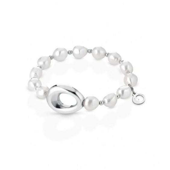 Bracciale elastico in perle d'acqua dolce ed elementi in AG925 silver 18.5cm