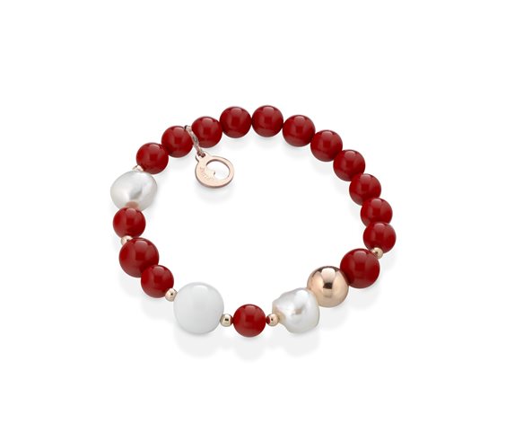 BRACCIALE CON PERLE FW, PASTA DI CORALLO ED ELEMENTI IN ARGENTO.