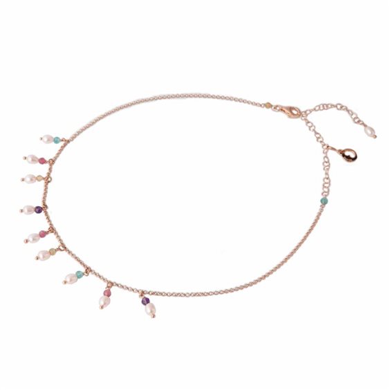 Collana in argento rosa, perle d'acqua dolce e spinelli colorati