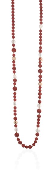 COLLANA CON PERLE FW, AGATA ROSSA ED ELEMENTI IN ARGENTO