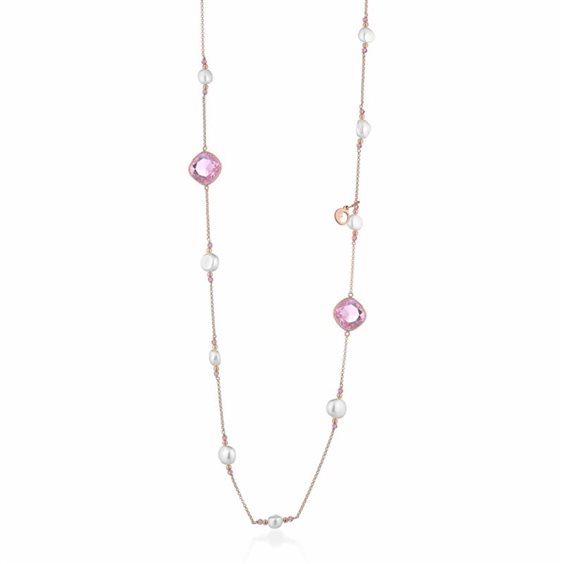 Collana in argento rosa con perle d'acqua dolce, spinello rosa e cristalli rosa