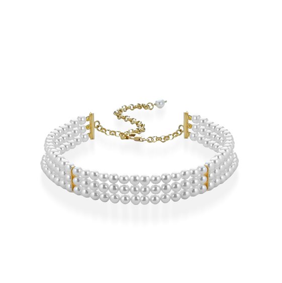 Girocollo a 3 fili con perle d’acqua dolce mm 5,5/6 e chiusura in Ag925 giallo 3 row choker with fresh water pearls 5,5/6mm and clasp in yellow silver