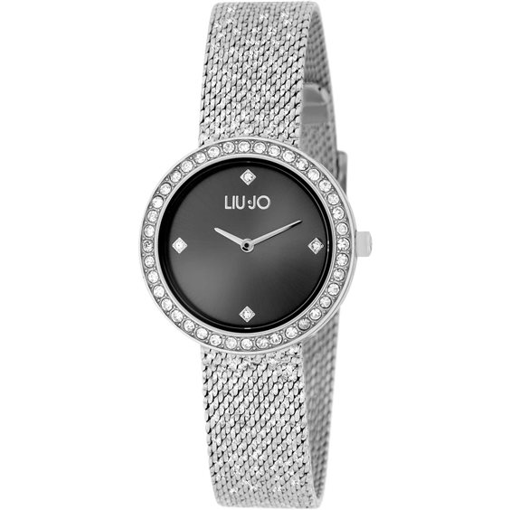 Orologio da donna con movimento Seiko VX10 al quarzo e funzioni di solo tempo. Cassa rotonda in acciaio inox dal diametro di 29 mm. Quadrante analogico nero con cristalli bianchi agli indici. Cinturino in maglia milano d'acciaio anallergico; chiusura di sicurezza. Resistente all'acqua fino a 30 metri di profondità.