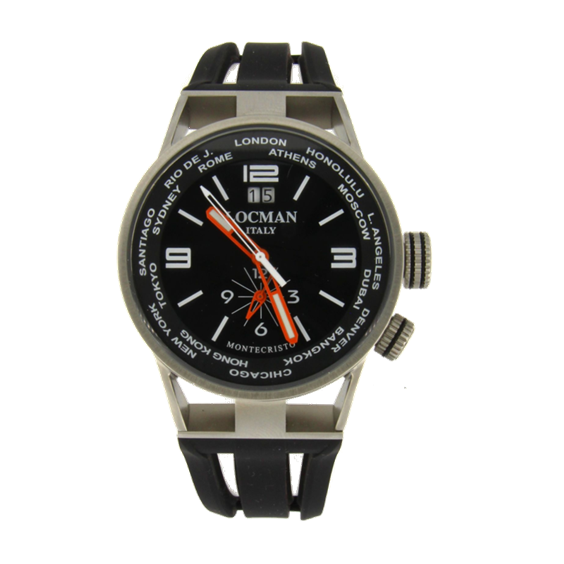 Orologio Locman ref.508 Montecristo World, cassa acciaio itanio, 44 mm.,vetro zaffiro, movimento ronda dual time, gran data, 100 atm., cinturino in silicone, chiusura deployantè