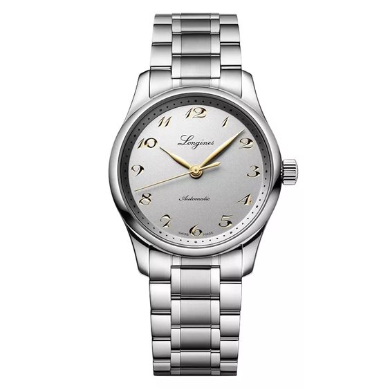 Orologio automatico da donna in acciaio inossidabile, quadrante argento con numeri arabi dorati, solo tempo.