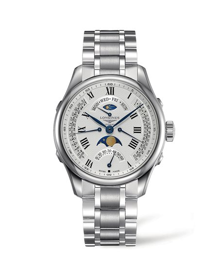 LONGINES MASTER COLLECTION RETROGRADEL2.738.4.71.6 Dimensioni della cassa: 41.00 mm 44.00 mm 4.600,00 € LONGINES MASTER COLLECTION RETROGRADE, L2.738.4.71.6, orologio Automatico, Ø 41.00 mm, Acciaio inossidabile. GMT Riserva di carica, Movimento meccanico a carica automatica con frequenza di 28.800 alternanze orarie e riserva di carica di 48 ore. Impermeabile fino a 3 bar, Vetro zaffiro antigraffio. Quadrante Argento grains d'orge. Bracciale in Acciaio inossidabile, Con chiusura déployante a tripla sicurezza e meccanismo di apertura a pressione.