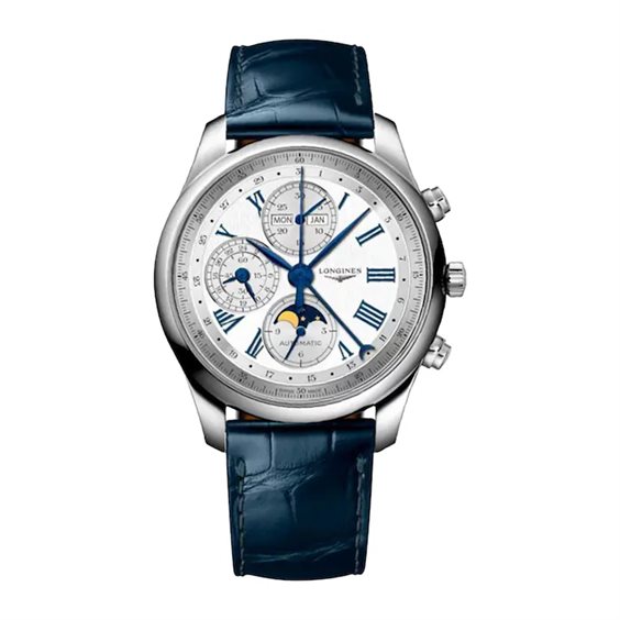 Tipo di movimento Automatico Funzione Ore, minuti, piccoli secondi con indicatore delle 24 ore a ore 9. Indicazione della data mediante lancetta centrale a mezzaluna. Indicatore delle fasi lunari a ore 6. Calibro L687 Descrizione del movimento Movimento meccanico a carica automatica con frequenza di 28'800 alternanze orarie e riserva di carica di circa 66 ore, bilanciere-spirale in silicio monocristallino Funzione speciale Fasi lunari Cronografo Cronografo con movimento ruota a colonne Funzioni cronografiche Meccanismo del cronografo: lancetta centrale dei 60 secondi, indicazione della fase lunare con contatore delle 12 ore a ore 6 e contatore dei 30 minuti con indicazione del giorno e della data a ore 12