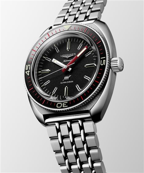 L'orologio dalla precisione estrema Ispirandosi al Longines Ultra-Chron Diver originale del 1968, questo modello con calibro ad alta frequenza è una reinterpretazione che celebra l’approccio pionieristico di Longines nel mondo del cronometraggio sportivo, che da sempre distingue la Maison. Il nuovo Longines Ultra-Chron saprà conquistare sia gli appassionati di orologi vintage che gli amanti dell’alta tecnologia. Il modello esibisce un bracciale in acciaio ed è consegnato all’interno di uno speciale cofanetto contenente un cinturino NATO nero realizzato a partire da materiali riciclati.