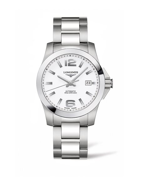 Vetro: vetro zaffiro antigraffio con trattamento antiriflesso sul lato interno Fondello: Fondello avvitato Dimensioni: Ø 39,00 mm Impermeabilità: impermeabile fino a 30 bar Movimento e funzioni Calibro: L633, movimento meccanico a carica automatica con frequenza di 28.800 alternanze orarie e riserva di carica di 38 ore Funzione: ore, minuti, secondi e data. Quadrante e lancette Colore quadrante: nero, blu o bianco Giro delle ore: numeri arabi e indici dipinti, con Super-LumiNova ® Lancette: lancette argentate lucide, con Super-LumiNova ® Referenza L3.676.4.16.6