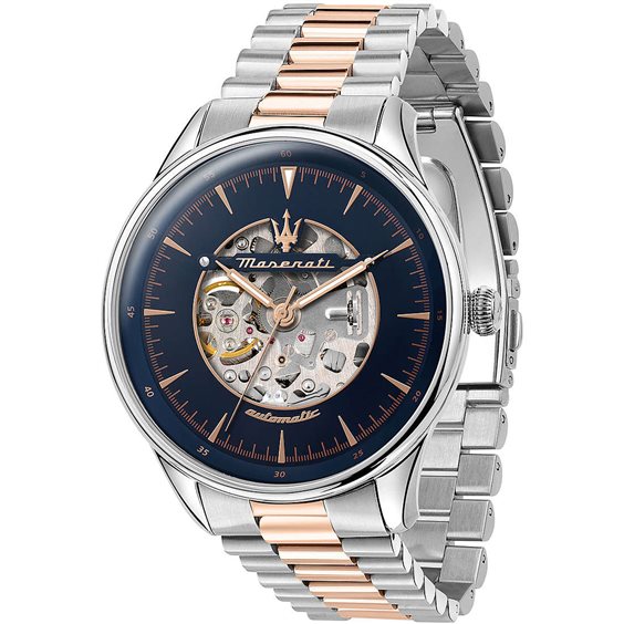 Genere: Uomo, Materiale e finitura cassa: Acciaio, Misura cassa: 45mm, Spessore cassa: 13,55, Finitura cassa: Lucido, Satinato, Colore cassa: Silver, Oro rosa, Vetro: Minerale,