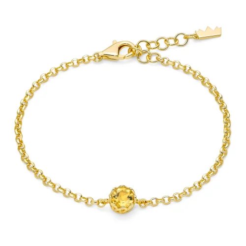 Bracciale da donna Miluna della collezione Unica Colibrì. Bracciale in argento 925 PVD oro con pietra centrale quarzo citrino. La lunghezza del bracciale è regolabile da 16,5 a 19,5 cm. Referenza: BRD1119