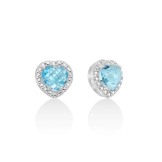 Orecchini donna a lobo , argento 925 , topazio azzurro naturale a forma di cuore , zirconi bianchi , pietre incastonate con griffe.