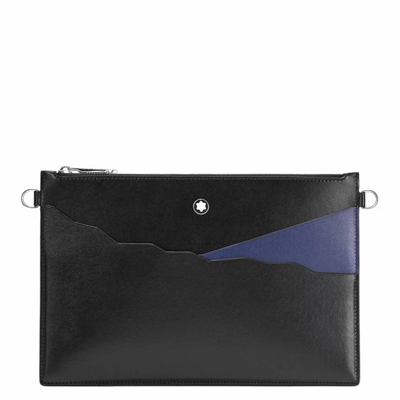 Ispirato all’arte della scrittura, l’astuccio Meisterstück permette di avere l’essenziale sempre a portata di mano, con stile. Realizzato in una nuova tipologia di pelle nera estremamente lucida, presenta impunture e cursore della cerniera che richiamano la forma di un pennino, la vera essenza di Montblanc. Una versione più grande del logo impreziosisce la borsa. Il profilo della tasca anteriore è un tributo al Monte Bianco. Si può portare sotto il braccio, a mano o avvolto intorno al polso, per un look decisamente di tendenza. Presenta due anelli a D per attaccare la tracolla, venduta separatamente, o altri accessori per aggiungere un tocco personalizzato.