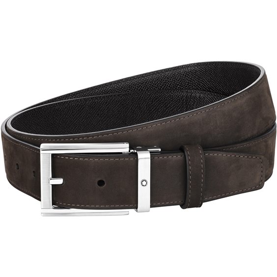 Cintura Montblanc Classic Line – Montblanc Cintura elegante e casual in pelle di vacchetta reversibile nera e marrone nubuk, con la lunghezza regolabile a bisogno DETTAGLI: MATERIALE: pelle di vacchetta pieno fiore proveniente dall’Italia e finiture di pregio, concia al cromo, tintura passante. Reversibile nera marrone. CARATTERISTICHE: Fibbia ad ardiglione rettangolare con finitura palladio lucido con emblema Montblanc. Meccanismo a rotazione. Meccanismo per la regolazione della lunghezza. DIMENSIONI: 1200 x 35 mm. Disponibile anche nella variante di colore Blue
