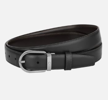 Montblanc Cintura Con Fibbia Ad Ardiglione A Ferro Di Cavallo Finitura Rutenio Lucido Fibbia a ferro di cavallo finitura rutenio lucido. Cinghia auto-regolabile, 3 cm x 120 cm, reversibile in pelle nera e marrone. Pensata per un look classico con un tocco in più.
