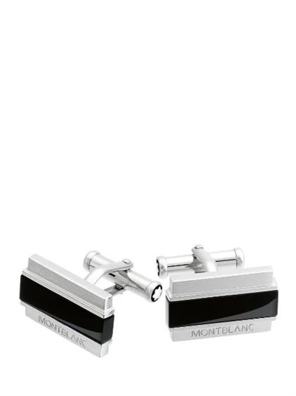 gemelli di forma rettangolare in pregiato argento 925/1000 con inserto centrale in resina nera.