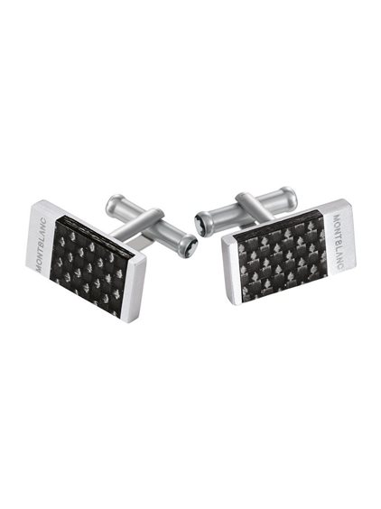gemelli di forma rettangolare in acciaio inossidabile con inserto in carbonio.