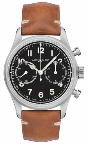 Il Montblanc 1858 Automatic Chronograph è un connubio di estetica pura e funzionalità e offre la precisione delle funzioni cronografiche. Per la prima volta, il Montblanc 1858 Automatic Chronograph aggiunge bi-pulsanti alla linea per avviare il cronografo. La cassa di 42 mm presenta una finitura lucida e satinata e il vetro zaffiro evidenzia la robustezza e il look contemporaneo dell’orologio. Il fondello reca le incisioni di una bussola, due piccozze incrociate e dell’emblematico Monte Bianco, la vetta iconica alla quale la Maison si è ispirata fin dalla sua fondazione. Il quadrante nero offre uno sfondo elegante ai contatori bi-compass posizionati a ore 3 e 9, ispirati agli storici cronografi Minerva.