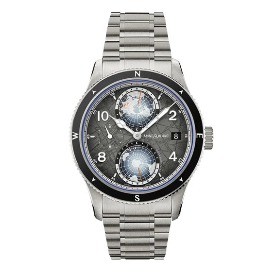 Rendendo omaggio alle vette più alte del mondo e agli alpinisti che osano scalarle resistendo a condizioni estreme, il Montblanc 1858 Geosphere Chronograph 0 Oxygen The 8000 è alloggiato in una cassa in titanio di 42 mm totalmente priva di ossigeno. Questa innovazione comporta diversi vantaggi per gli esploratori, in quanto elimina l'appannamento e previene l'ossidazione, consentendo ai componenti del movimento di durare più a lungo con una precisione ancora più accurata. Il segnatempo è animato dal movimento automatico di manifattura MB 29.25 con complicazione ora universale, che indica le ore dei 24 fusi orari leggibili sui continenti luminescenti dei globi tridimensionali dell'emisfero boreale e australe, le indicazioni giorno/notte, l’ora di due fusi orari e la data. L’orologio è inoltre dotato di una lunetta bidirezionale scanalata in ceramica nera con punti cardinali luminescenti, di un quadrante grigio scuro Sfumato con motivo “ghiacciaio” e tocchi arancioni e di un bracciale intercambiabile in titanio con conicità e regolazioni raffinate. Il fondello di questo modello reca un’incisione laser in 3D del monte K2, raffigurato con colori, profondità e realismo incredibili.