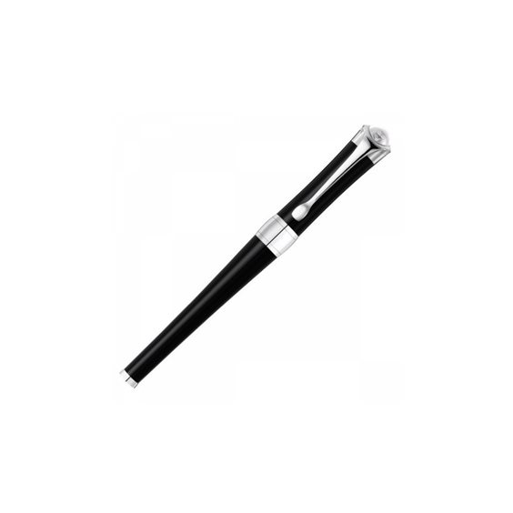 Penna Montblanc Etoile stilografica Edizione Speciale realizzata con corpo in resina nera lucida e finiture in platino con cappuccio svitabile impreziosito da un diamante di ct. 0,06 a forma di stella Montblanc con pennino in oro lavorato.