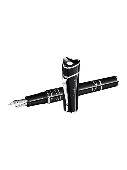 Un'autentica penna Montblanc che commemora i classici "I viaggi di Gulliver" di Jonathan Swift. Questa penna stilografica Montblanc è finemente realizzata in lacca nera con intarsi che rappresentano le corde utilizzate per legare Gulliver sulla spiaggia dell'isola di Lilliput. Il cappuccio ha la forma del tricorno di Gulliver e riporta la firma di Jonathan Swift. Una clip placcata in platino ha la forma della scala che il sindaco dell'isola di Lilliput doveva salire per raggiungere Gulliver. Un pennino in oro 18 kt riccamente inciso e rodiato mostra l'esercito di Lilliput che marcia tra le gambe di Gulliver.