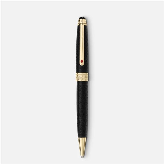 La collezione Meisterstück Around the World in 80 Days si ispira al famoso romanzo di avventura di Jules Verne “Il giro del mondo in 80 giorni”. La penna a sfera Solitaire Midsize in legno tinto nero trae ispirazione dalla seconda tappa del viaggio, da Bombay a Yokohama. Il legno è stato scelto per rendere omaggio al momento in cui Fogg salva la Principessa Auda dall’obbligo di commettere la pratica del Sati. In questa seconda tappa avventurosa, i protagonisti viaggiano su un maestoso elefante, che compare in un cartiglio sul cappuccio. Il corpo e il cappuccio recano un motivo inciso con simboli. La clip sfoggia un asso di quadri laccato rosso, che rappresenta la scommessa di Fogg di compiere il viaggio in 80 giorni. La parte superiore del cappuccio presenta la goffratura della durata del viaggio, 25 giorni da Bombay a Yokohama e 80 giorni in totale.