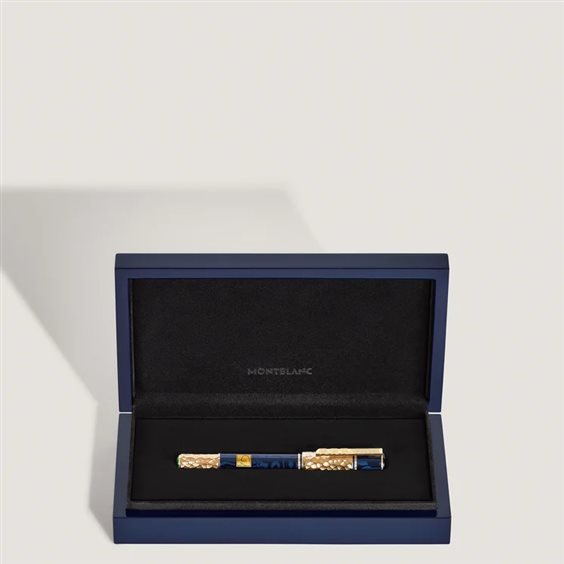 Nel corso della storia, grandi artisti hanno espresso l’esperienza umana in un linguaggio universale di forma e bellezza. La Montblanc Masters of Art Collection rende omaggio al loro contributo immortale alla ricerca della perfezione nell’arte: una ricerca che da sempre Montblanc promuove e celebra. Un artista la cui visione ha contribuito sicuramente a forgiare l’Art Nouveau viennese e l’Età d’oro è Gustav Klimt. La Montblanc Masters of Art Homage to Gustav Klimt Edizione Limitata 4810 celebra i suoi esordi artistici nella Secessione viennese e nel suo design evidenzia elementi tratti dai suoi capolavori “Pallade Atena” e “Il bacio”. Con la sua ribellione contro i concetti stereotipici dell’arte e della società, Gustav Klimt è stato un pioniere dell’avanguardia. Klimt seppe fondere rappresentazione realistica, ornamento e astrazione in uno stile che raggiunse il suo apice nei grandi ritratti femminili delicatamente sensuali. Uno dei primi dipinti in cui valorizzò in egual misura il soggetto del ritratto e gli ornamenti è un ritratto del 1902 della sua compagna e musa Emilie Flöge, raffigurata in una tonalità di blu onirica e quasi mistica. Quest’opera d’arte ha ispirato la tonalità blu della Montblanc Masters of Art Homage to Gustav Klimt Edizione Limitata 4810. I cerchi, le spirali, i triangoli e le linee che brillano attraverso la lacca traslucida blu scuro dello strumento da scrittura provengono dal suo celebre dipinto “Il bacio”, in cui due innamorati sembrano dissolversi in forme ornamentali e geometriche attraverso il potere dell’emozione. Realizzati in lacca blu traslucida e metallo martellato finitura oro giallo, il cappuccio e il corpo dello strumento da scrittura abbinano alla perfezione i colori complementari in riferimento alle celebri opere del “periodo aureo” di Gustav Klimt, tra cui il “Ritratto di Adele Bloch-Bauer I”, il Fregio di Palazzo Stoclet e “Il bacio”. Klimt utilizzò una nuova tecnica che consisteva nell’arricchire i suoi colori con sezioni a foglia d’oro, creando così l’impressione di pietre preziose incastonate nell’oro. Nell’Edizione Limitata 4810, il cono martellato finitura oro giallo è impreziosito da uno spinello sintetico verde, colore che evoca la primavera, la stagione dei nuovi inizi. Il monogramma della “Secessione” di Klimt, un timbro dorato delle sue iniziali - GK - fa riferimento ai traguardi raggiunti dall’artista nell’ambito della Secessione. La clip dell’Homage to Gustav Klimt 4810 Edizione Limitata è stata appositamente realizzata su ispirazione della “Pallade Atena” di Gustav Klimt. Atena è la dea della guerra e dell’arte, e viene ritratta nell’atto di lanciare la lotta per la libertà artistica. Le linee delicatamente curve che terminano in tre spirali sulla clip finitura oro giallo corrispondono alle decorazioni presenti sulla cornice in metallo forgiato. Il pennino in oro giallo massiccio Au 750 lavorato a mano è finemente inciso con un gufo, simbolo di conoscenza, saggezza e intuizione, ed è considerato il fedele animale della dea greca Atena. L’incisione è un riferimento al dipinto di “Pallade Atena” di Gustav Klimt, ma anche all’edificio della Secessione viennese, le cui facciate laterali sono decorate con sculture di gufo.