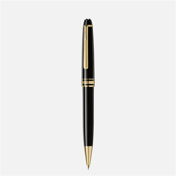 Portamine Meisterstück Gold-Coated Classique, 0.7 mm La Meisterstück Classique in pregiata resina nera con dettagli finitura oro, sormontata dall'emblema a forma di stella bianca, rappresenta un'esclusiva icona di design.