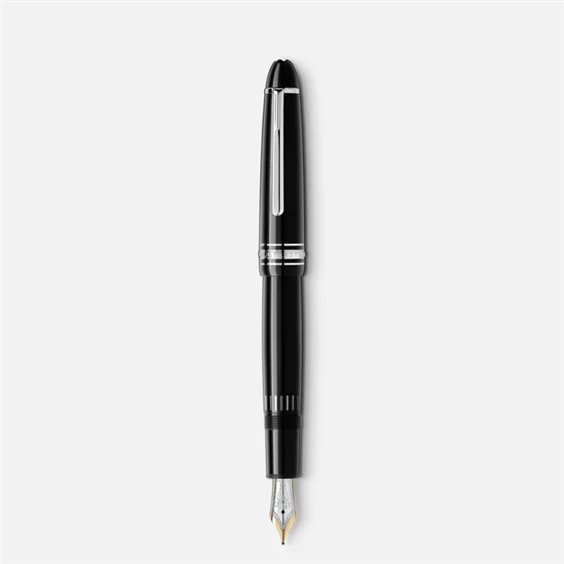 Stilografica Meisterstück Platinum-Coated LeGrand Pennino: F Stilografica a stantuffo con pennino in oro 14 K con inserti rodiati, serbatoio e cappuccio in pregiata resina nera con emblema Montblanc intarsiato, clip e anelli finitura platino