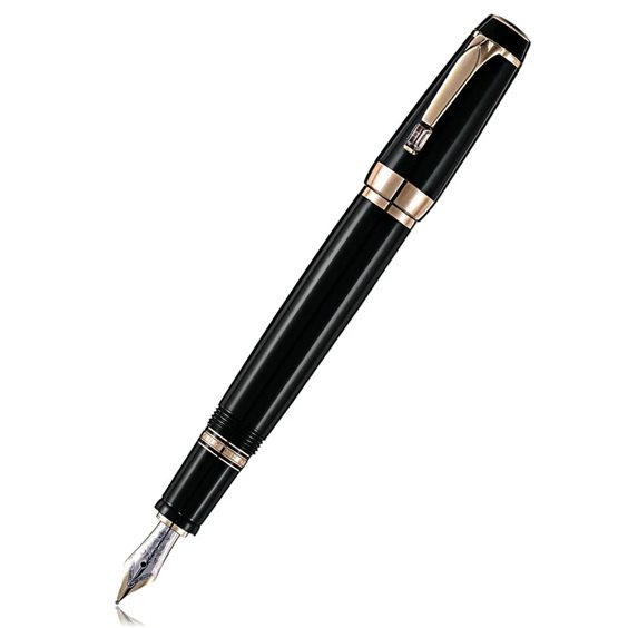 Penna originale Mont Blanc con scatola e garanzia, stilografica, in resina nera. Stilografica con pennino estraibile misura M, tappo a vite. La clip è impreziosita da un quarzo marrone incastonato.