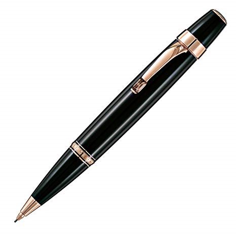 Matita Montblanc 38271, mechanical pencil Collezione Bohème in resina preziosa nera Clip placcata in oro rosso impreziosita da un quarzo marrone con numero di serie individuale Misura della mina 0,9 mm