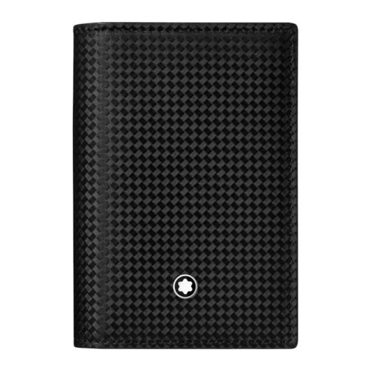 MATERIALE: Mix di pelle di vitello e vitello pieno fiore di provenienza italiana, colore nero, concia al cromo, tintura passante, con stampa effetto fibra di carbonio. CARATTERISTICHE: un ampio scomparto per Carte di Credito, 2 aperture per carte di credito e 1 tasca piatta extra. Questo prodotto presenta la tecnologia Montblanc Shield, integrata nella fodera dorata di una tasca, che aumenta la protezione contro i tentativi di lettura abusiva, duplicazione e/o manomissione dei dati personali. DIMENSIONI: 75 x 105 x 15 mm.