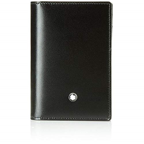 Montblanc 108946 Porta Banconote 108946 Nero Unica Porta biglietti da visita in vacchetta pieno fiore nera di provenienza europea, nero lucido esclusivo Montblanc, fodera jacquard con marchio Montblanc ed emblema Montblanc con anello finitura palladio, con scomparto per biglietti da visita, 2 tasche per carte di credito, tasca extra. Dimensioni: 7,5 x 11 cm
