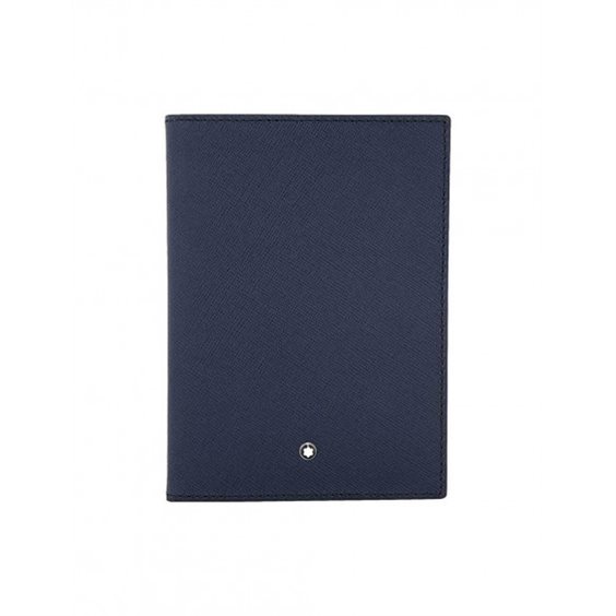 Porta passaporto Mintblanc collezione Sartorial. Realizzato in pelle di vitello pieno fiore proveniente dall'Italia, fodera jacquard con marchio Montblanc, emblema Montblanc con anello finitura palladio.